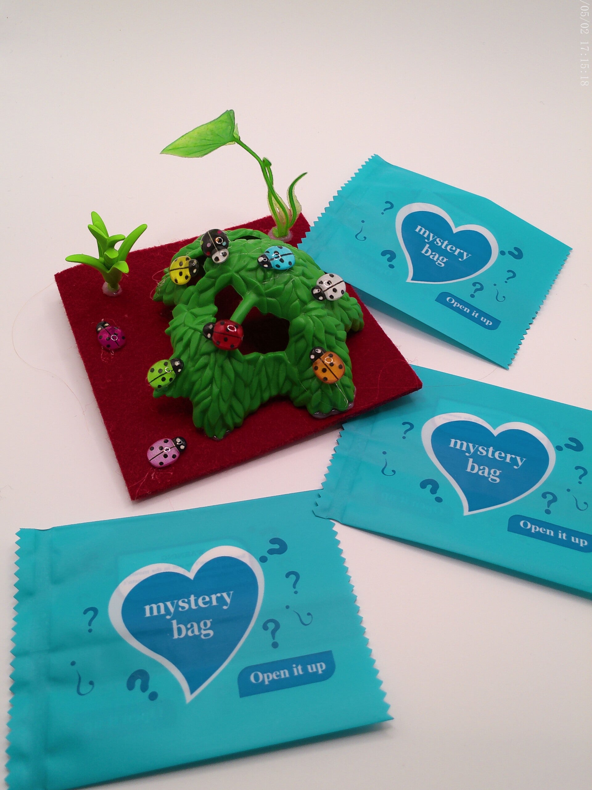 Die Mini-Marienkäfer werden in einer Überraschungs Tüte mit 4 St. Mini-Marienkäfer verschickt.