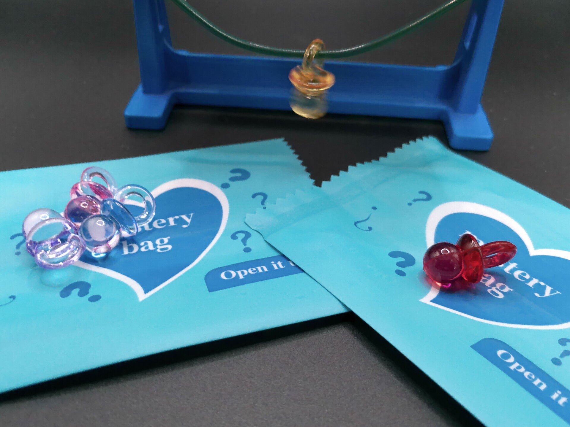 Mini-Schnuller-Halsketten werden je mit 2 St. in verschiedenen Farben in einer Überraschungs Tüte verschickt.