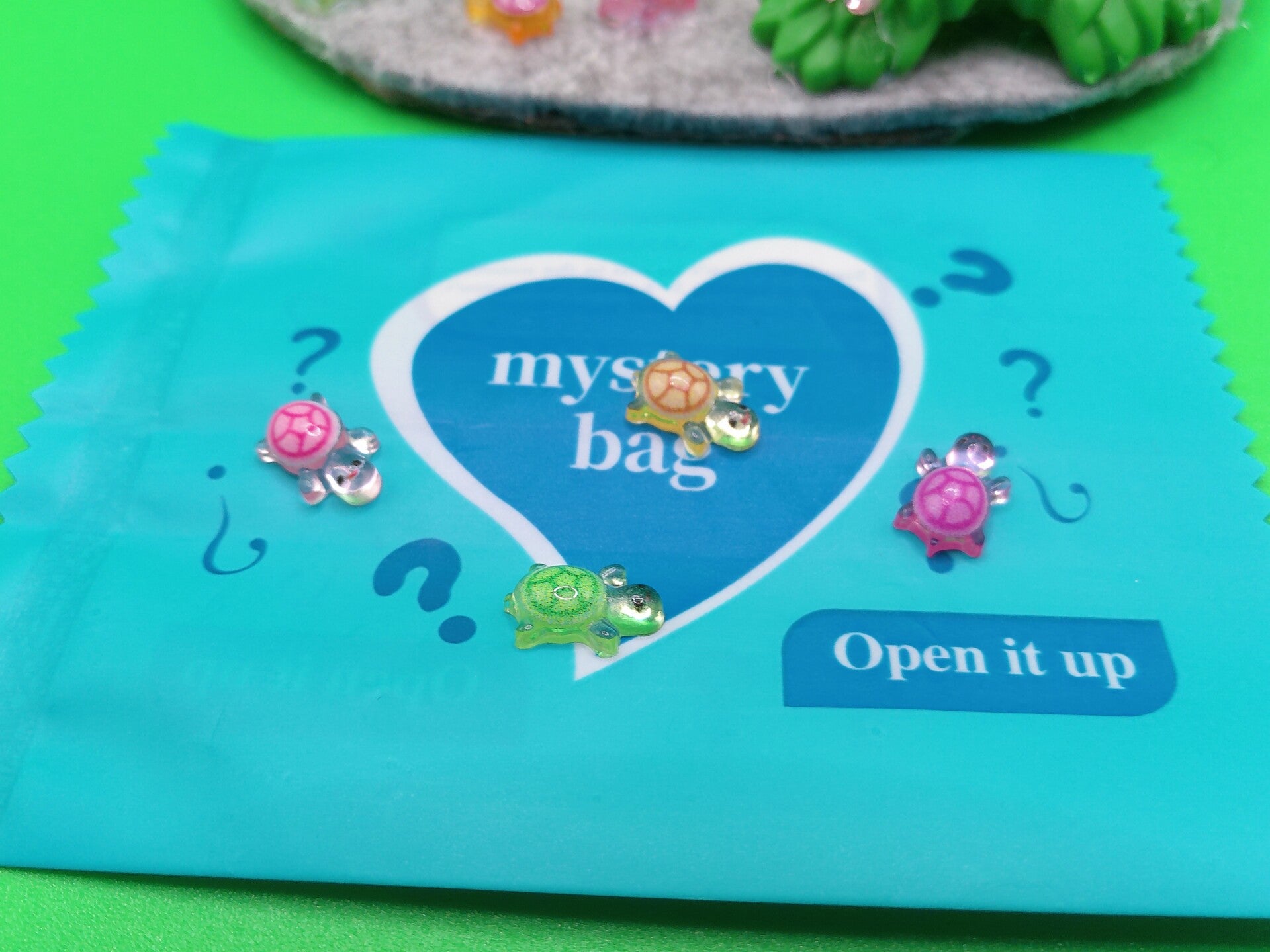 Mini-Mini-Mini-Schildkröten, werden in verschiedenen Farben zu je 4 St. in einer Überraschungs Tüte verschickt.